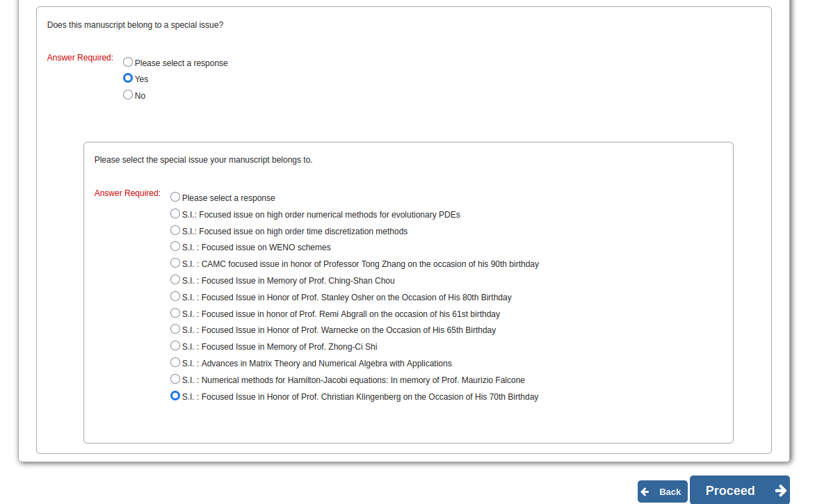 In the section "Additional information" please choose this focused issue as follows: